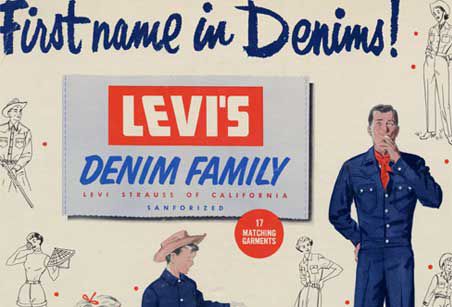 Se lanza la línea Denim Family, gracias al creciente interés por los vaqueros como tela adecuada para los momentos de ocio. Y lo que una vez fue solamente ropa de trabajo, cruza la línea y se pasa al mundo de la diversión.
